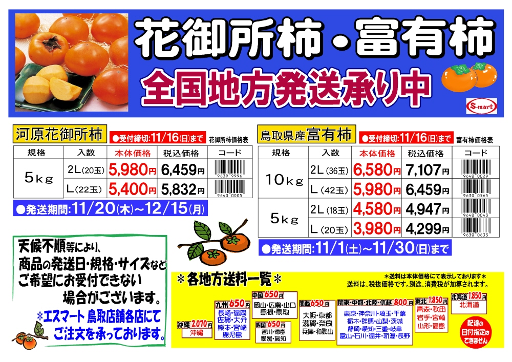 鳥取名産!!花御所柿・富有柿の全国地方発送承り中!