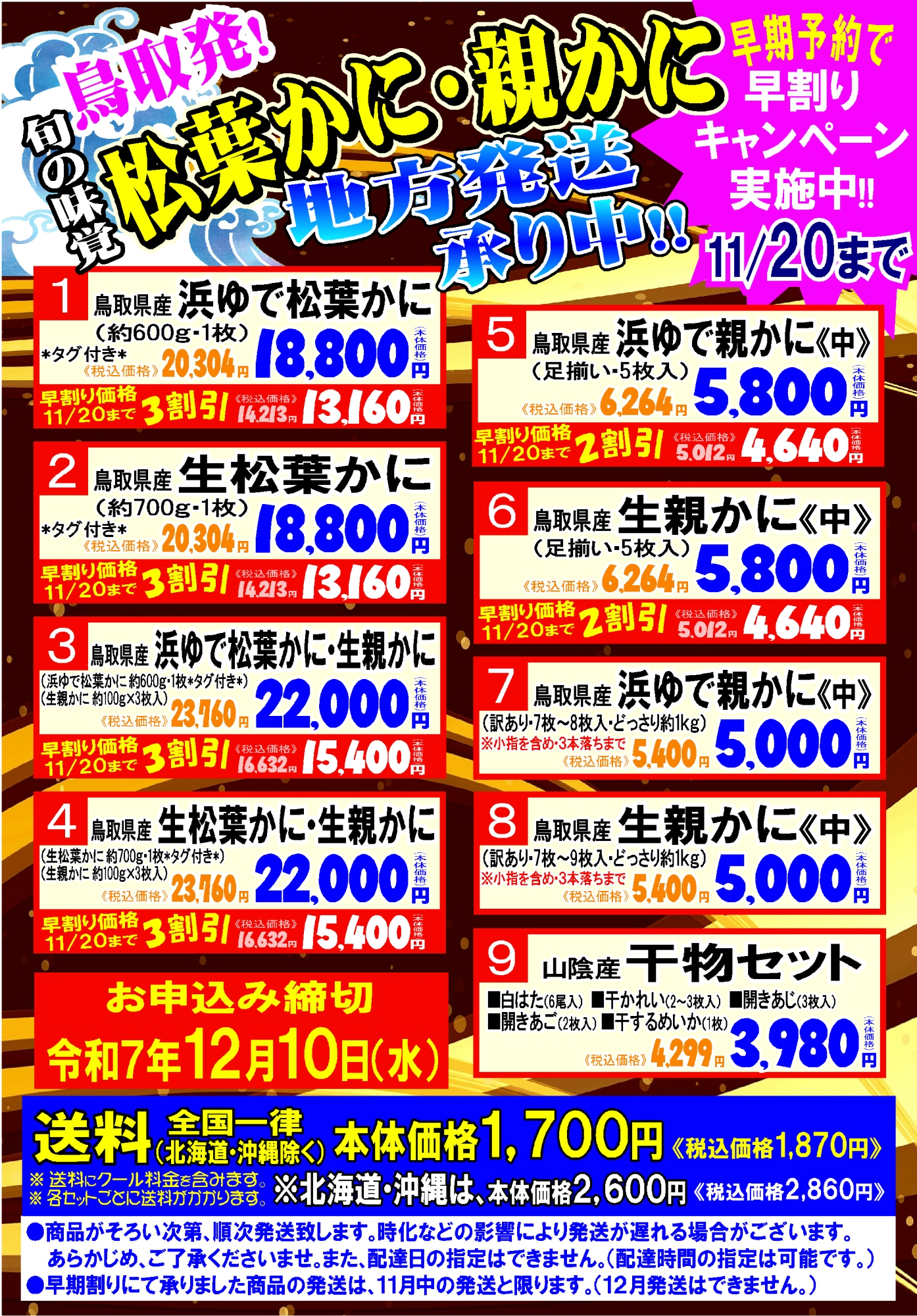 鳥取発!旬の味覚 松葉かに・親かにの地方発送承り中!