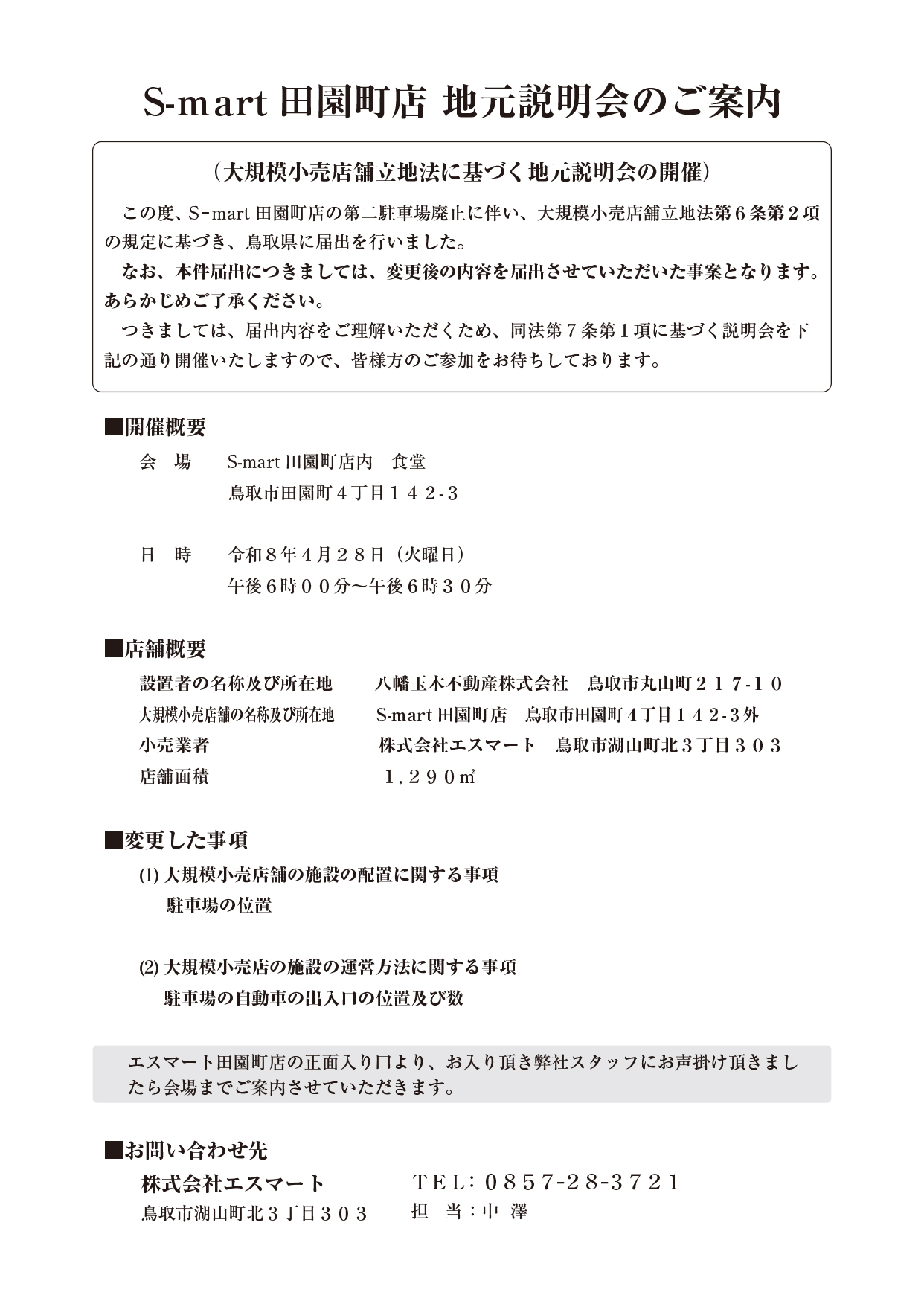 エスマート田園町店地元説明会のご案内