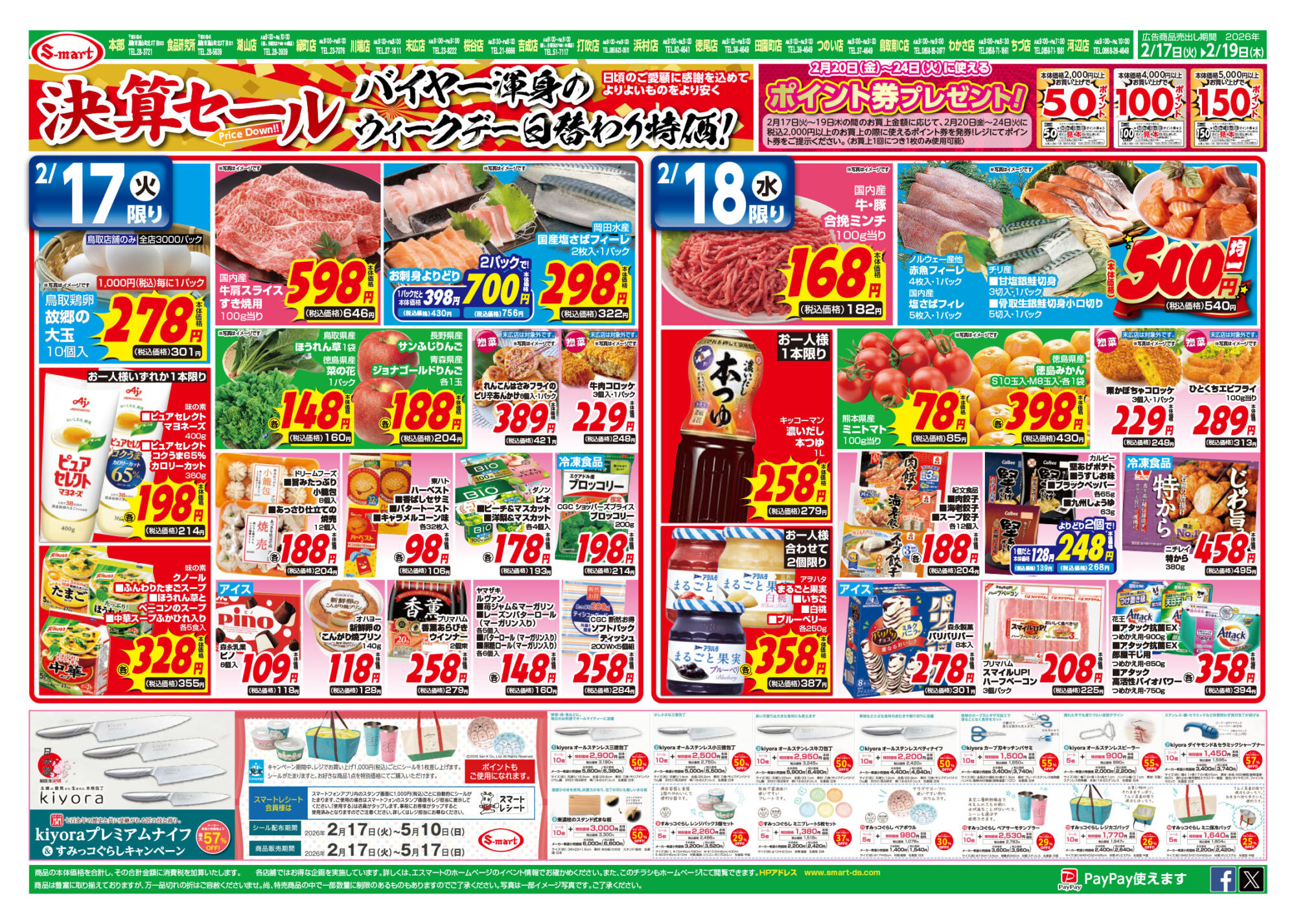 決算セール特価VOL4 ポイント券プレゼント! kiyoraプレミアムナイフ&すみっコぐらしキャンペーン