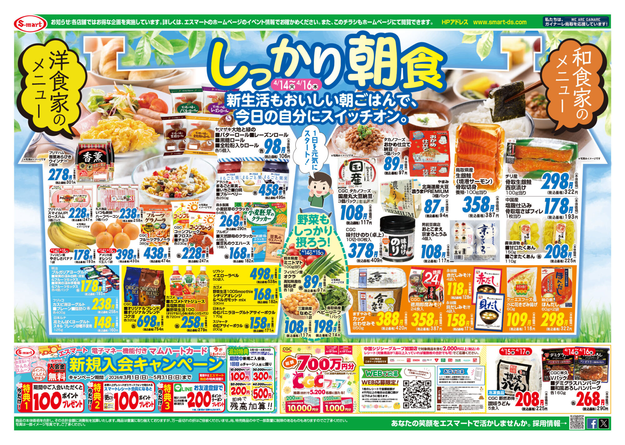 14日野菜が安い!15.16日バイヤー一押し特価!! しっかり朝食:洋食家・和食家のメニュー