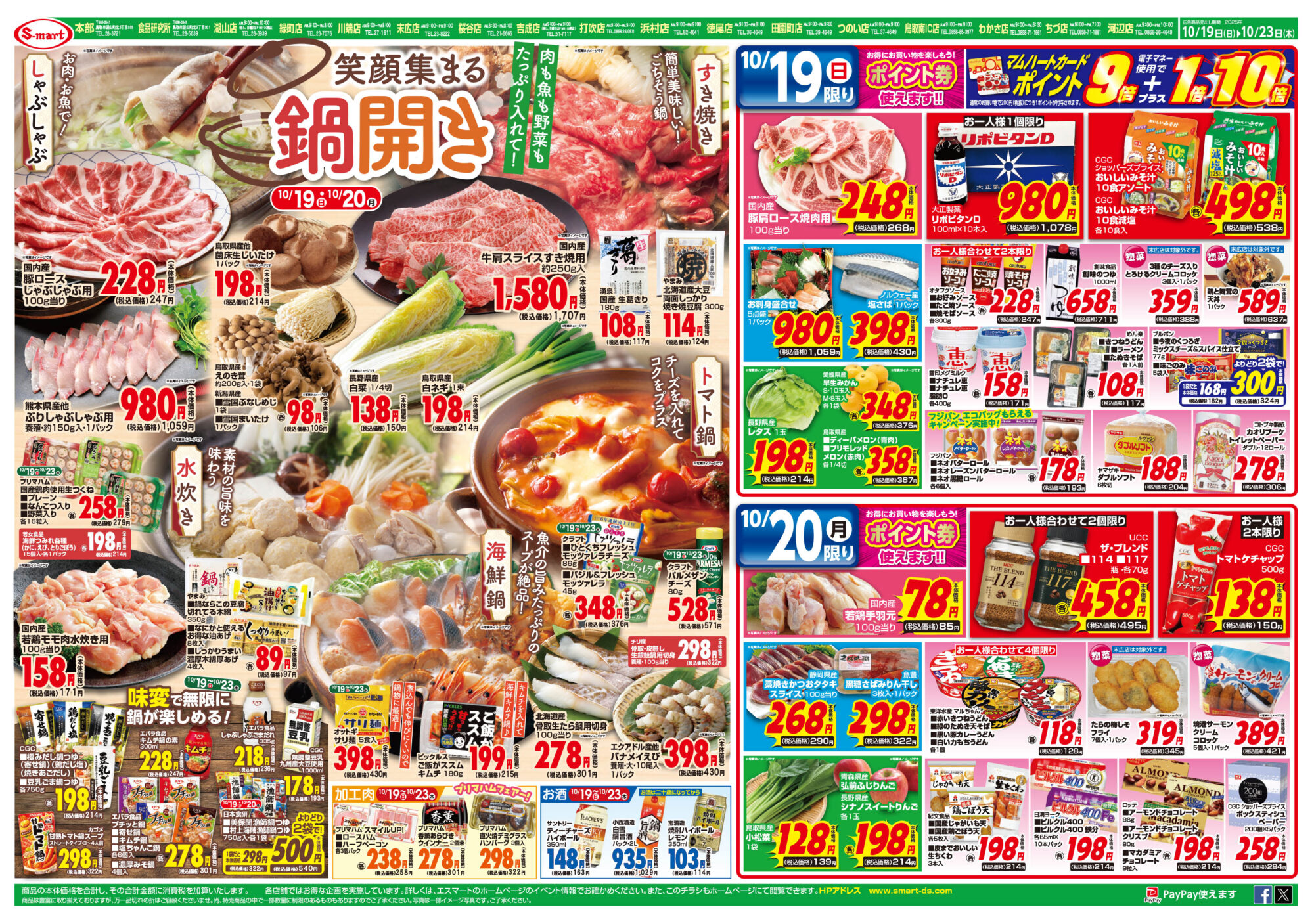 - 笑顔集まる鍋開き しゃぶしゃぶ・すき焼き・水炊き・海鮮鍋・トマト鍋:期間中ポイント券使えます:23日はコストコフェア!